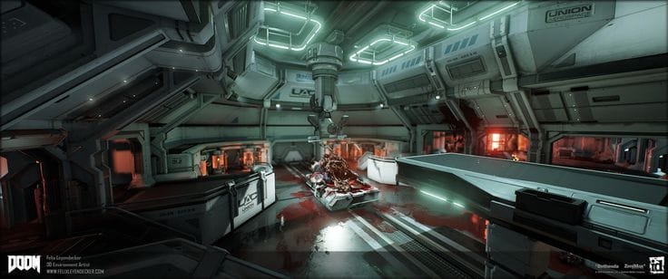 From the start, you are introduced to a place that has been devastated by the demons, with entire rooms decorated with blood and “meat status” created with the bodies of UAC employees giving a clear picture of how bad the situation is without directly telling you.