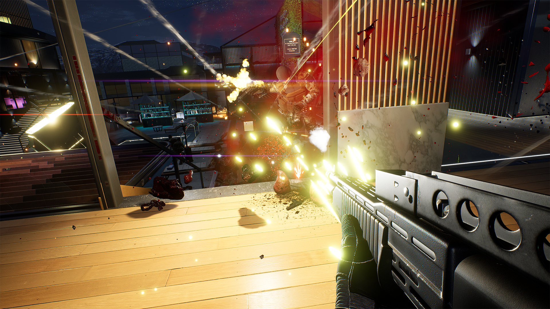 Combining these mechanics effectively makes spreading carnage a more cinematic experience, which is only complemented by a decently large arsenal mostly consisting of firearms and throwables, which you can upgrade.